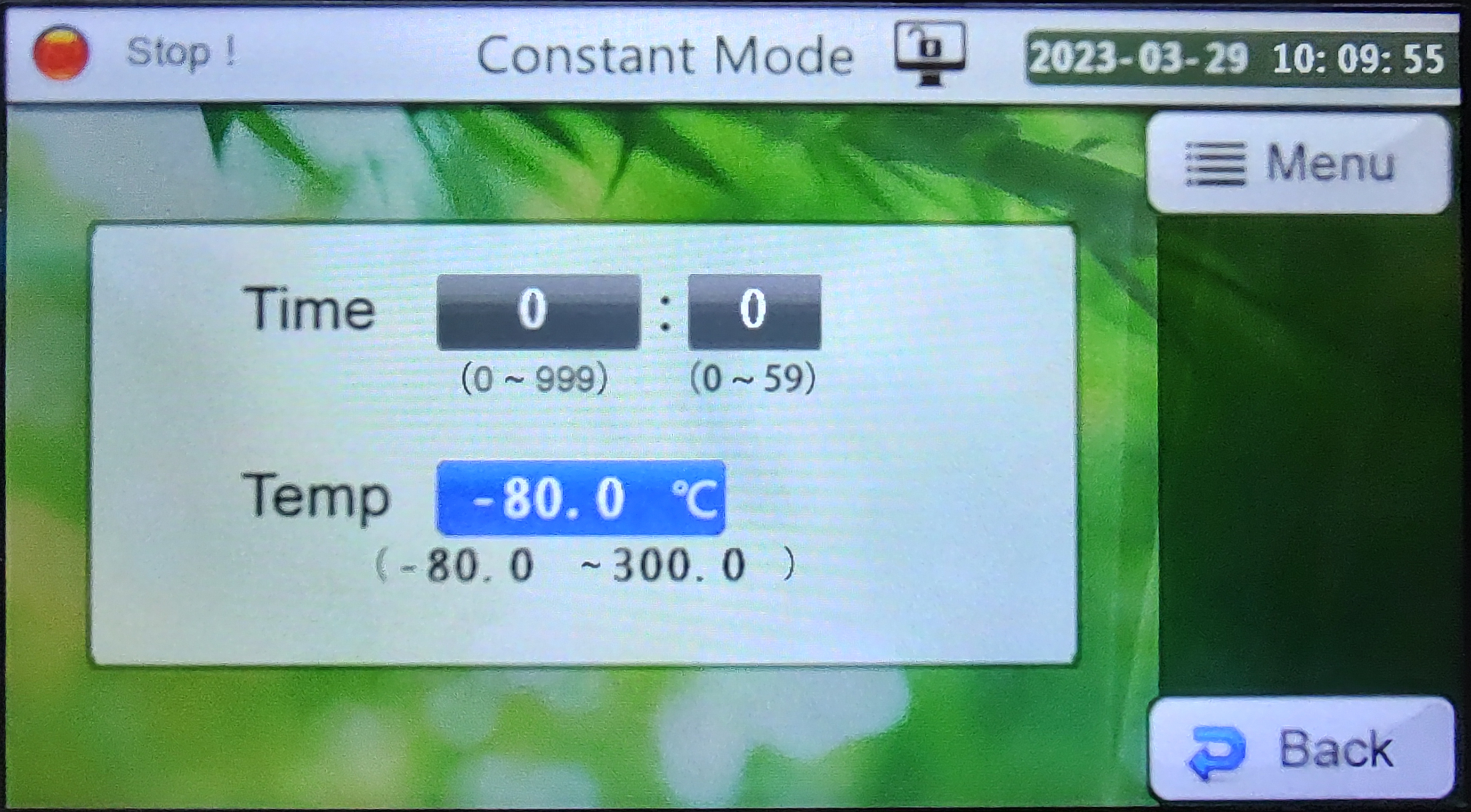 Depending on the Mode Set option selected from the main menu, selecting SV (1) displays either the Constant or Program mode temperature settings.