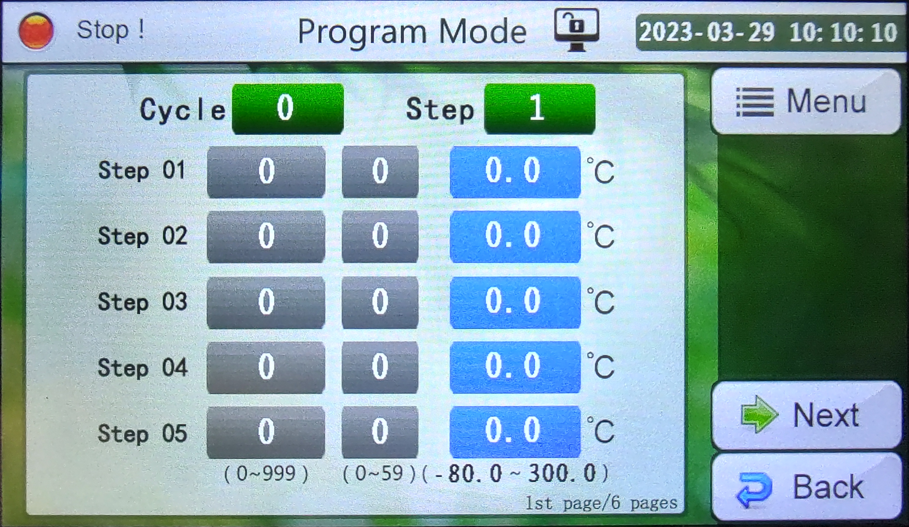 Program mode temperature settings