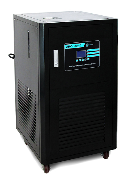 The USA Lab UHC-20/40 is a powerful -40°C to 200°C Heater Chiller combo with a 6L Reservoir. This heater chiller is ideal for applications involving vacuum systems, jacketed reactors, rotary evaporators, columns, solvent tanks, and even analytical instruments. These units are "Closed loop" and have a small in-feed hole allowing for the entire fluid reservoir to be closed off from the outside environment. The UHC Heater Chillers have easily accessible control panels for easy adjustments and repair.